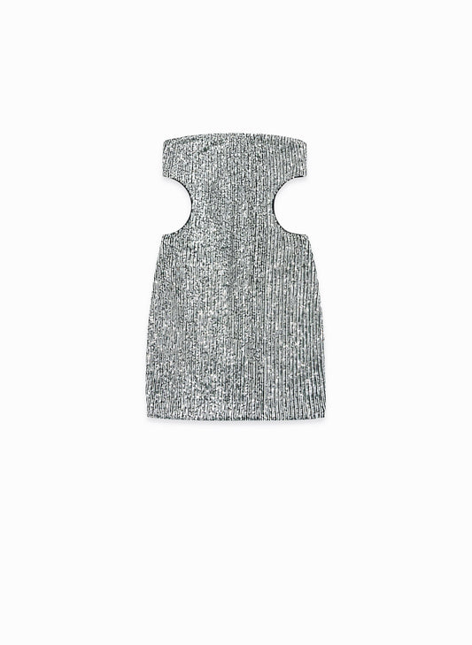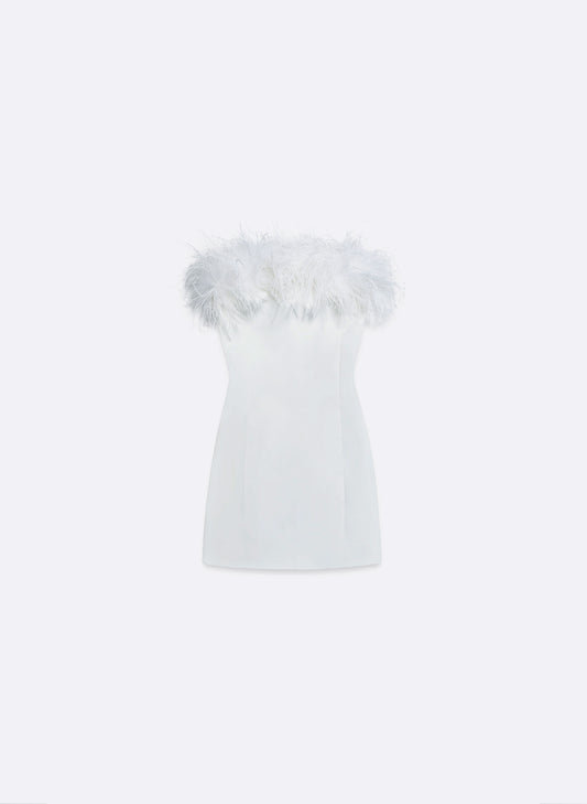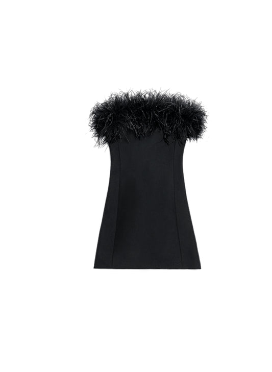 TAGLIONI Sequin Feathers strapless Dress in Black