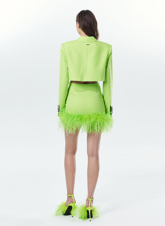 Wool Blend Feathers Fitted Skirt In Neon Green