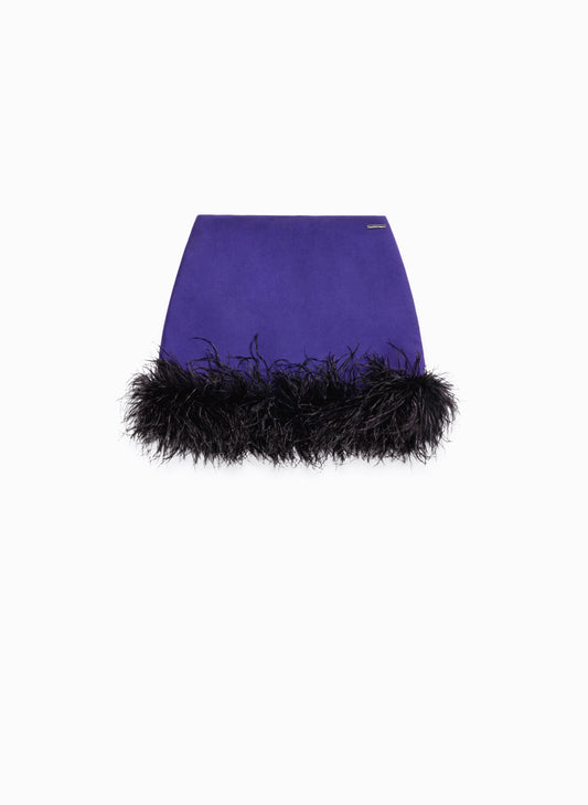 Wool Blend Feathers Fitted Skirt In Purple