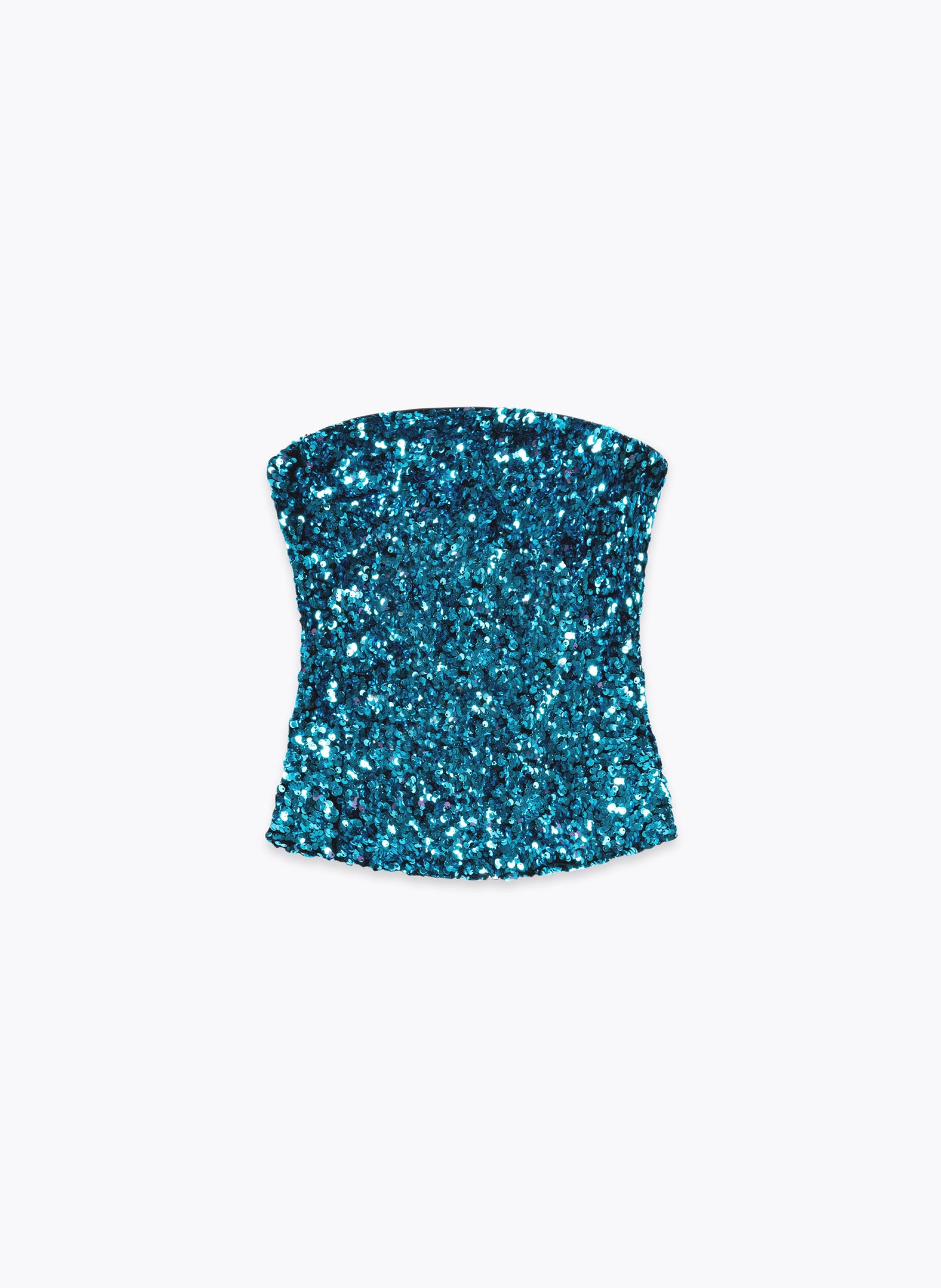 TAGLIONI Sequin Strapless Top in Blue