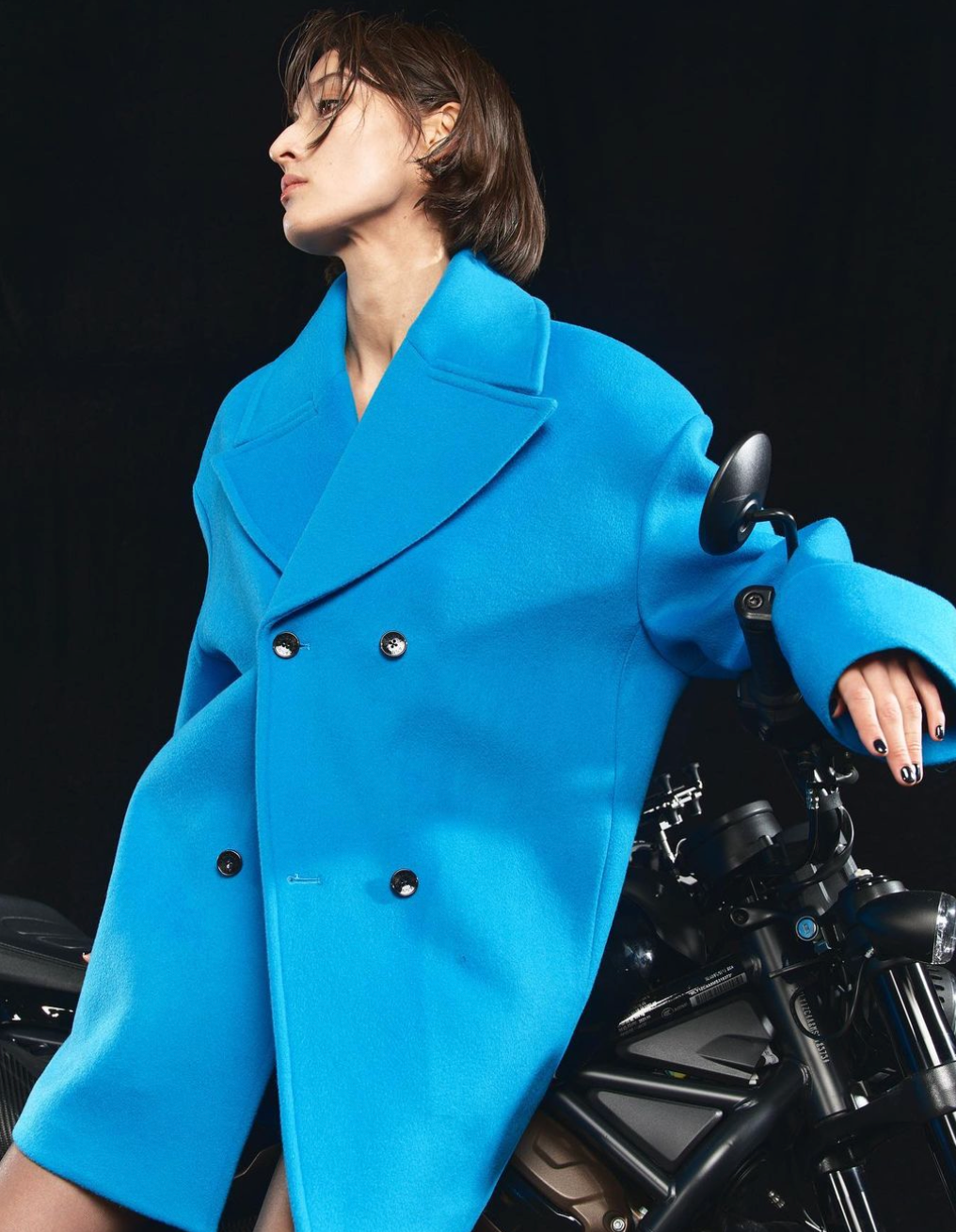 Wool Felt Oversize Coat in Blue